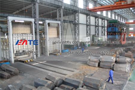 2.燃氣臺車爐主要由爐體、爐襯、爐門、自行走臺車系統(tǒng)、高速燃燒系統(tǒng)、管路及其壓力自控系統(tǒng)、爐壓自控及排煙余熱回收系統(tǒng)、密封裝置、溫度控制及記錄系統(tǒng)、計算機系統(tǒng)等主要部分組成。設備以各式燃燒氣體為介質,通過的高速燒嘴燃燒加熱,溫度1250℃。