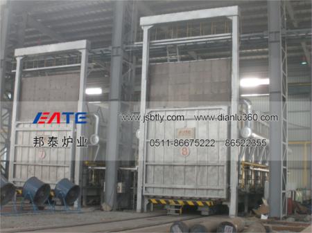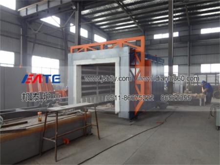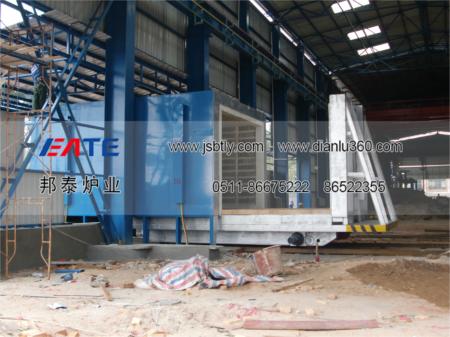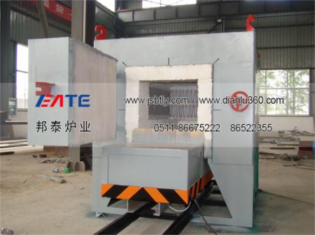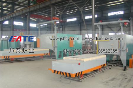 臺車爐主要用于鑄鋼件、汽車零部件、軋輥、鋼球、金屬結構件、焊接件淬火、正火、退火、回火、時效以及各種機械零件熱處理之用。爐型可根據客戶需求量身設計定做。爐殼:是用角鋼、槽鋼及鋼板焊接而成的長方體外殼,殼體下邊有槽鋼焊接成支持爐體的支架。爐襯:采用全纖維結構,相對磚式爐膛節能40%左右,采用優質長纖維刺毯為原料,使用專用設備制成的模塊,并組成節能型爐膛,達到完好蓄熱效果,與其它產品相比優點為低導熱,低熱容量,優良的腐蝕性能,優良的熱穩定性及熱抗震性、升溫快等優點。加熱元件采用高溫電阻合金絲繞制成帶狀和螺旋狀,分別吊掛在爐側、爐門、后墻及安放臺車擱絲磚上,并用高鋁瓷釘固定,安全簡潔。 電氣控制系統:溫控采用智能微電腦程序控溫,另配記錄儀記錄完整工藝曲線,并可超溫報警;操作采用按扭加燈光顯示,實現對臺車進出、加熱元件通斷及爐門升降等動作的控制,并設有連鎖裝置,當爐門升高工或關閉至一定位置時臺車可進行動作,安全可靠。