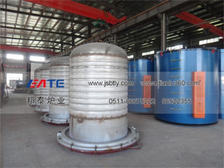 加熱罩由鋼板卷成園形經焊接加工而成,在罩身的上部有供吊鉤起吊換罩的位置,下部有三個支承爐罩的支承腳,底部裝有沙封刀,在加熱時使加熱罩能直接壓在爐內罩的法蘭上使其達到密封的效果,另在兩個導向環,以便加熱罩能方便準確地吊放在爐座上。